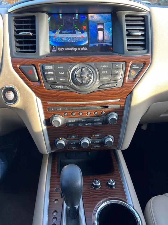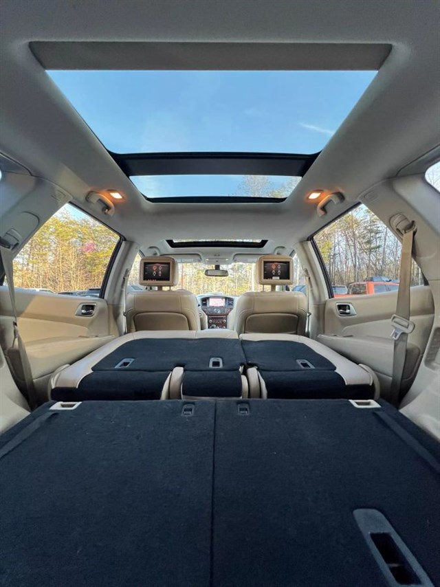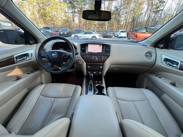 2017 Nissan Pathfinder Platinum Sport Utility 4D - Luxury, Performance, and VersatilityVIN - 5N1DR2MNXHC600586Warranty on the Engine and Transmission 1 month/1000 milesThe 2017 Nissan Pathfinder Platinum is a top-tier SUV offering a perfect blend of comfort, advanced features, and rugged capability. Designed with families and adventurers in mind, this vehicle combines a luxurious interior with impressive performance to meet all your driving needs.Key Features and Highlights:Performance:Powered by a 3.5L V6 engine with 284 horsepower, delivering smooth and responsive acceleration.Equipped with an Xtronic CVT (Continuously Variable Transmission) for a seamless driving experience.Interior Comfort:Premium leather seating with heated and ventilated front seats, heated second-row seats, and a heated steering wheel.Tri-zone automatic climate control to keep everyone comfortable.A power-adjustable driver's seat with memory settings and a panoramic moonroof add to the luxurious feel.Technology:An 8-inch touchscreen infotainment system with navigation and voice recognition.Bose premium audio system with 13 speakers for an immersive sound experience.Advanced features like a 360-degree Around View Monitor and front and rear parking sensors.Safety Features:Includes forward collision warning, automatic emergency braking, blind-spot monitoring, and rear cross-traffic alert.Multiple airbags and advanced stability control systems ensure maximum safety for passengers.Cargo Space and Versatility:Spacious seating for up to seven passengers with a second-row bench seat and third-row fold-flat seats.Up to 79.8 cubic feet of cargo space with the rear seats folded.Power liftgate for easy access to the cargo area.Exterior Design:Stylish and bold design with chrome accents, LED headlights, and 20-inch alloy wheels.Roof rails add practicality for carrying extra gear.Why Choose the 2017 Nissan Pathfinder Platinum?This SUV offers luxury, advanced technology, and practicality in one package. Whether you're tackling daily commutes, road trips, or off-road adventures, the 2017 Pathfinder Platinum ensures comfort and reliability for the entire family.Contact us today to schedule a test drive or for more details!