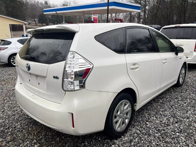 2012 Toyota Prius v Three Wagon 4DExterior Color: White PerlInterior: Comfortable cloth seating with a spacious and airy cabin designSeating Capacity: 5 passengers, with generous rear legroom and a versatile cargo areaEngine: 1.8L 4-cylinder hybrid engine paired with an electric motor, delivering a combined 134 horsepowerTransmission: Continuously Variable Transmission (CVT) for smooth, efficient accelerationDrivetrain: Front-wheel drive (FWD) for reliable handlingKey Features:Toyota Entune� infotainment system with a 6.1-inch touchscreen, Bluetooth� connectivity, and advanced voice recognitionIntegrated navigation system to guide you to your destinations with easeBack-up camera for added confidence when maneuvering in tight spacesSmart Key system with push-button start for convenient entry and ignitionExcellent fuel efficiency, achieving an EPA-estimated combined MPG in the low 40s, perfect for eco-conscious driversVersatile interior with fold-flat rear seats, providing ample cargo space for trips, groceries, or gearThe 2012 Toyota Prius v Three combines the trusted hybrid efficiency of the Prius line with enhanced cargo capacity and a comfortable, family-friendly interior. It's an ideal choice for drivers seeking both economy and practicality without sacrificing modern technology and convenience.